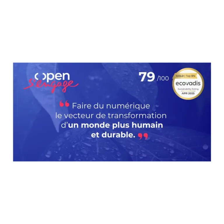 L’obtention de cette nouvelle Médaille d’Or avec la notation de 79/100 traduit une progression continue par rapport à nos évaluations précédentes et confirme la dynamique d’amélioration d’Open en matière de durabilité et de responsabilité sociale.