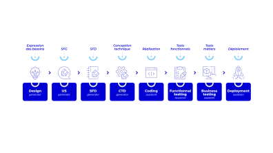 - Expression de besoin & conception – Génération et formalisation automatique des exigences, détection des incohérences, documentation assistée. (Design Generator, US Generator, DFS Generator, CTD Generator)